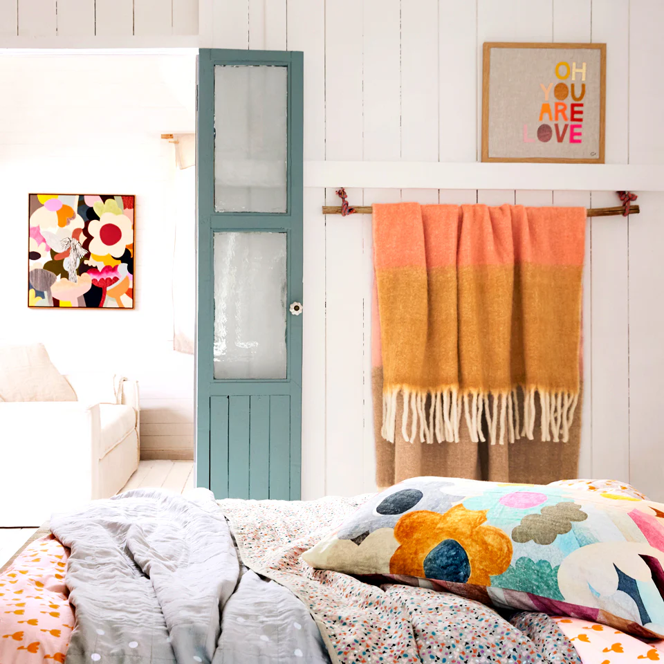 100% Belgian linen pillowcase with multi colour rainbow print